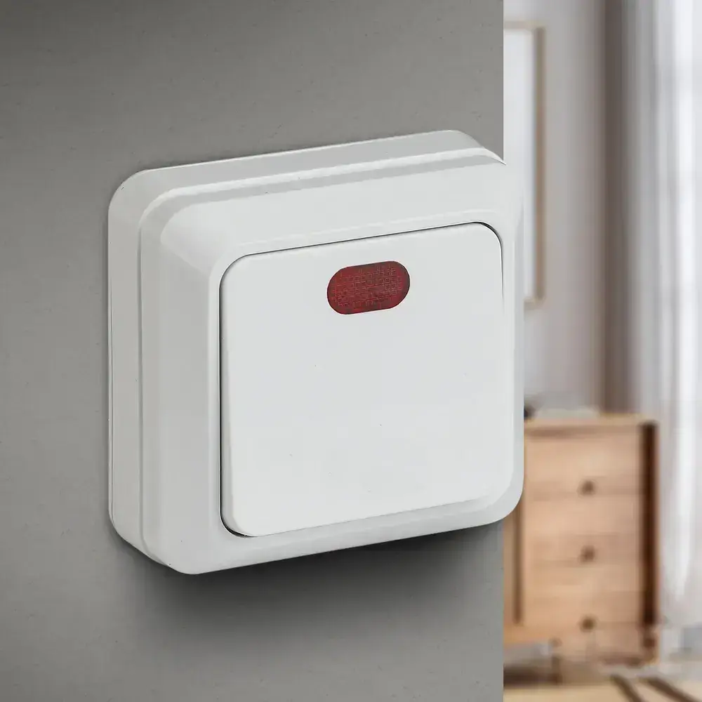 Выключатель Intro Quadro 2-102-01 одноклавишный с подсветкой 10А-250В IP20 ОУ белый