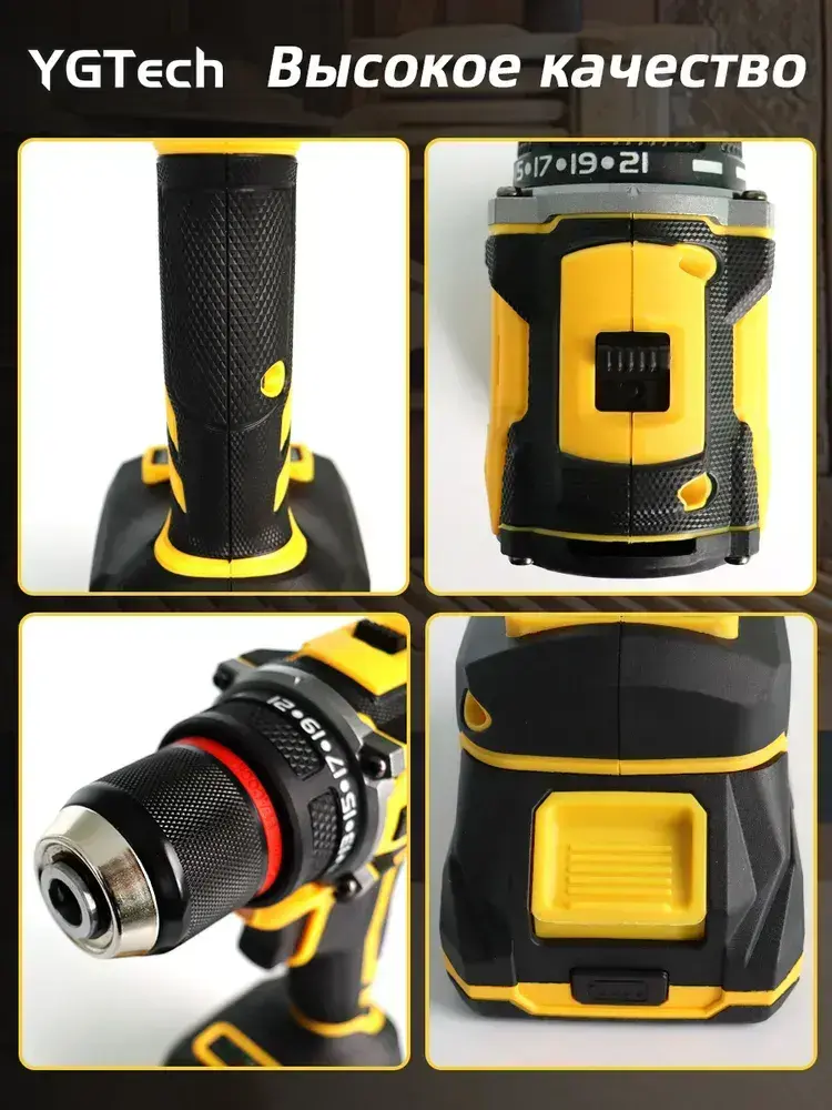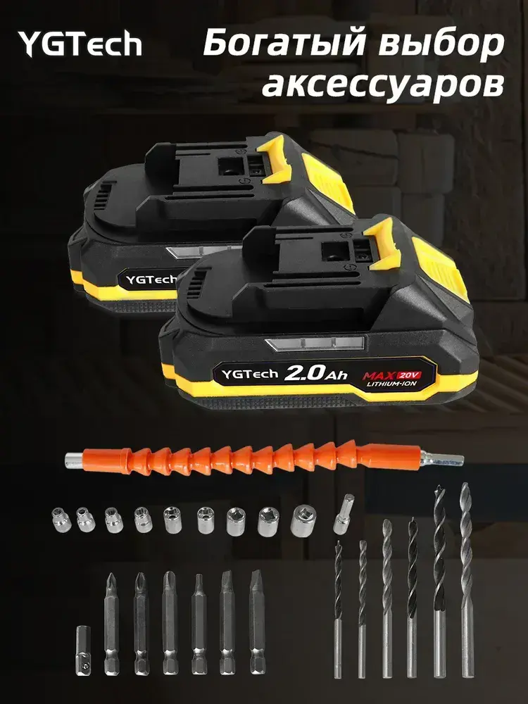 YGTECH Дрель-шуруповерт, 26 В, 60 Нм, 2 АКБ