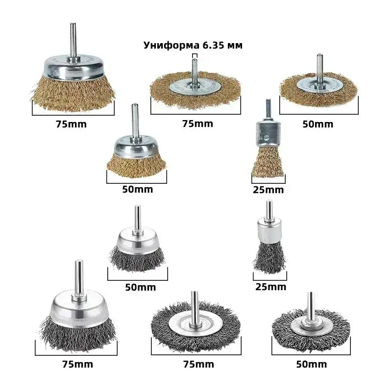 YICITY 10 шт / Набор щеток-крацовок для дрели и шуруповёрта. Корщётка металлическая для удаления ржавчины
