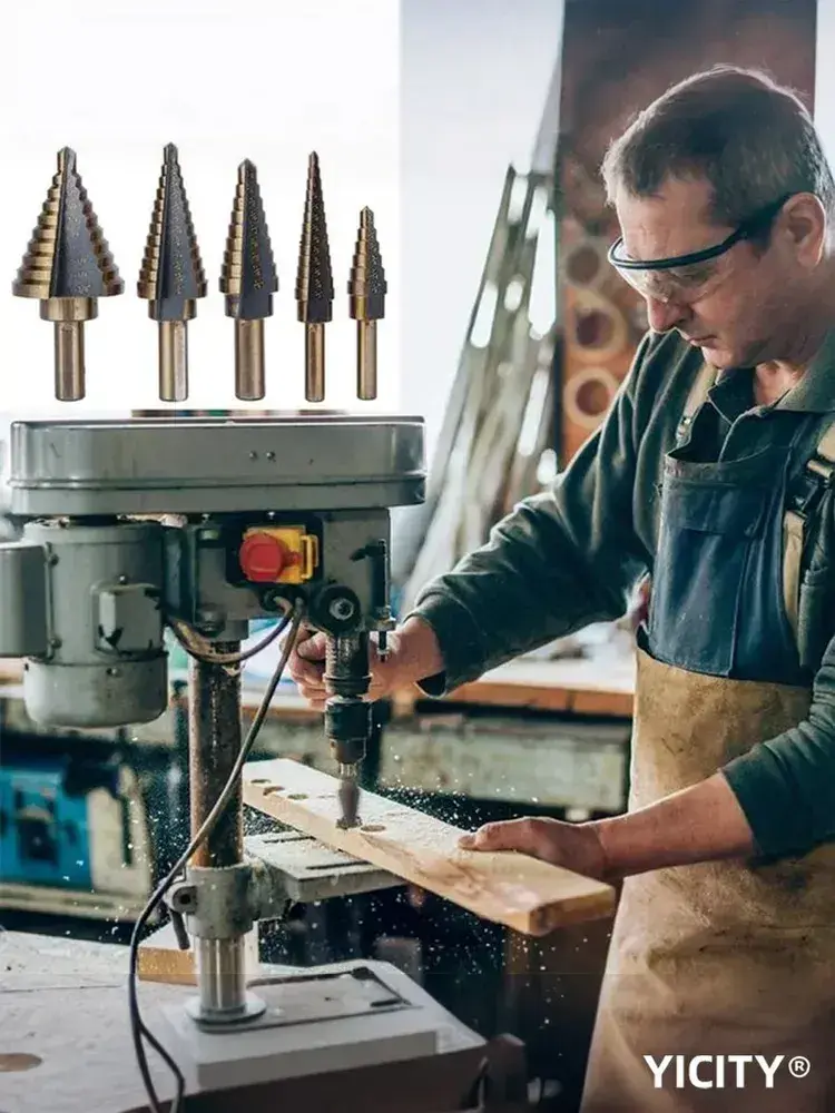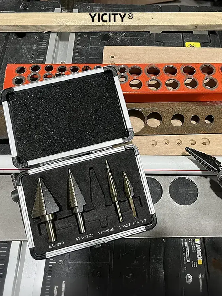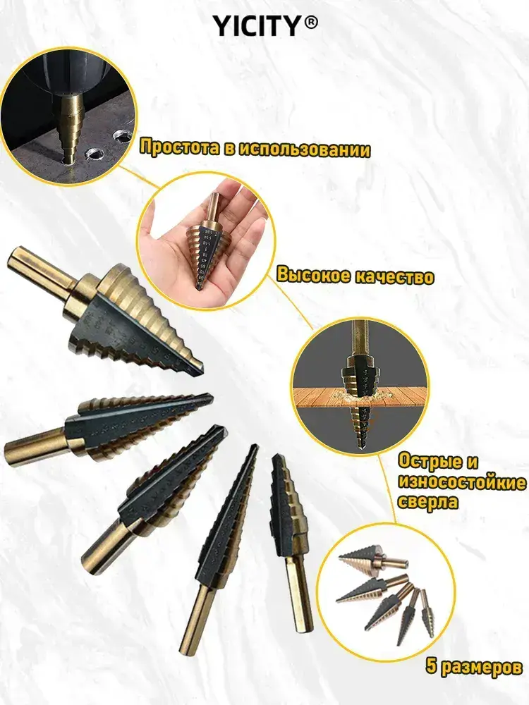 YICITY Набор ступенчатых сверел по металлу с титановым покрытием в кейсе 5шт (6-35, 5-22, 6-19, 5-13, 3-12мм)/трехгранный хвостовик/набор сверел по металлу