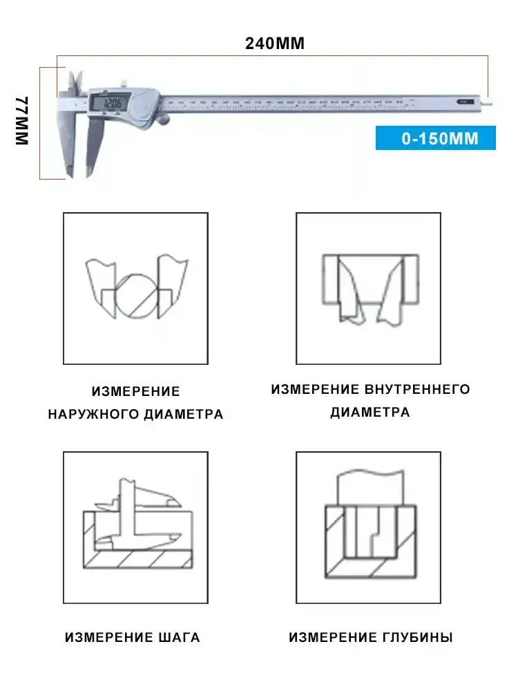 YICITY Штангенциркуль электронный, цифровой металлический, супер точность до 0,01 мм, 0-150 мм / IP54