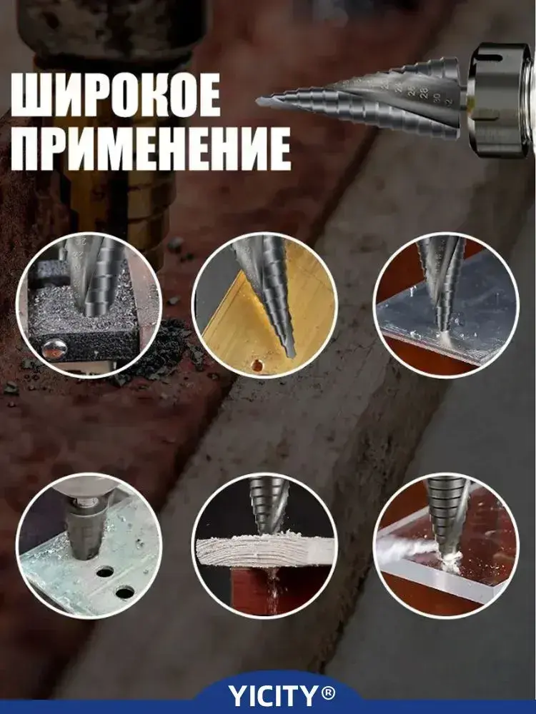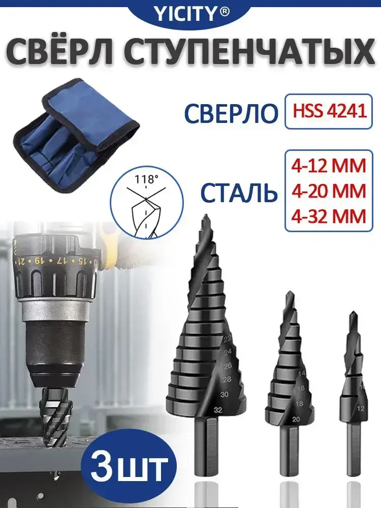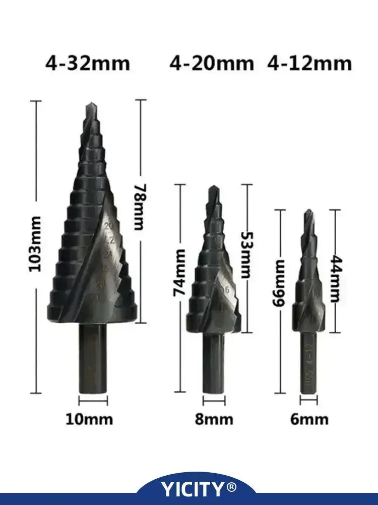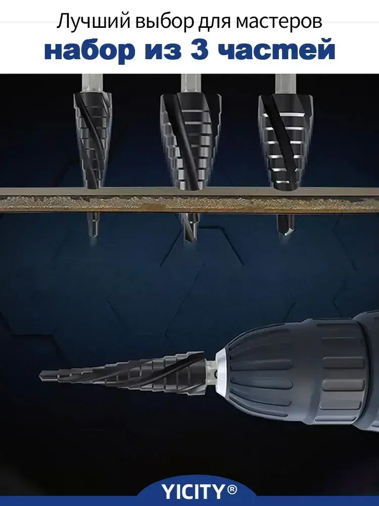 YICITY Сверло ступенчатое по металлу 3шт, с титановым покрытием, конусные