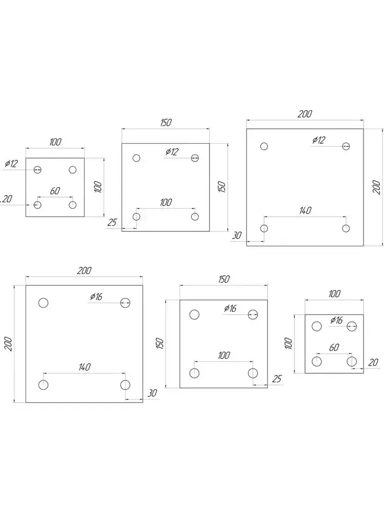 Закладная пластина 5мм 150х150мм с отверстиями 12мм 10 шт, фланец, квадрат / база колонны, опора для стойки / металлическая пластина