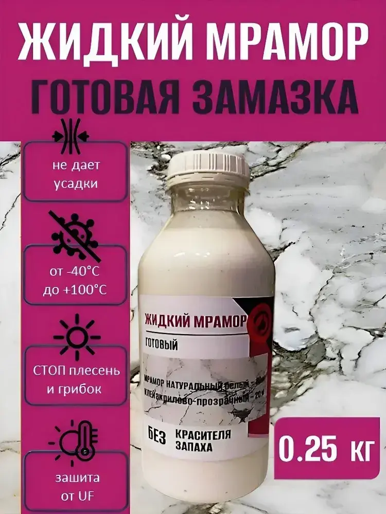 Замазка эпоксидно-акриловая мраморная MARBLE DUST, для окон, заделки выбоин и трещин, белая 0.25 кг