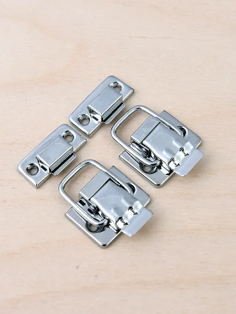 Замок чемоданный H-001 (2шт) ХРОМ, замок защёлка, замок лягушка, замок хромированный