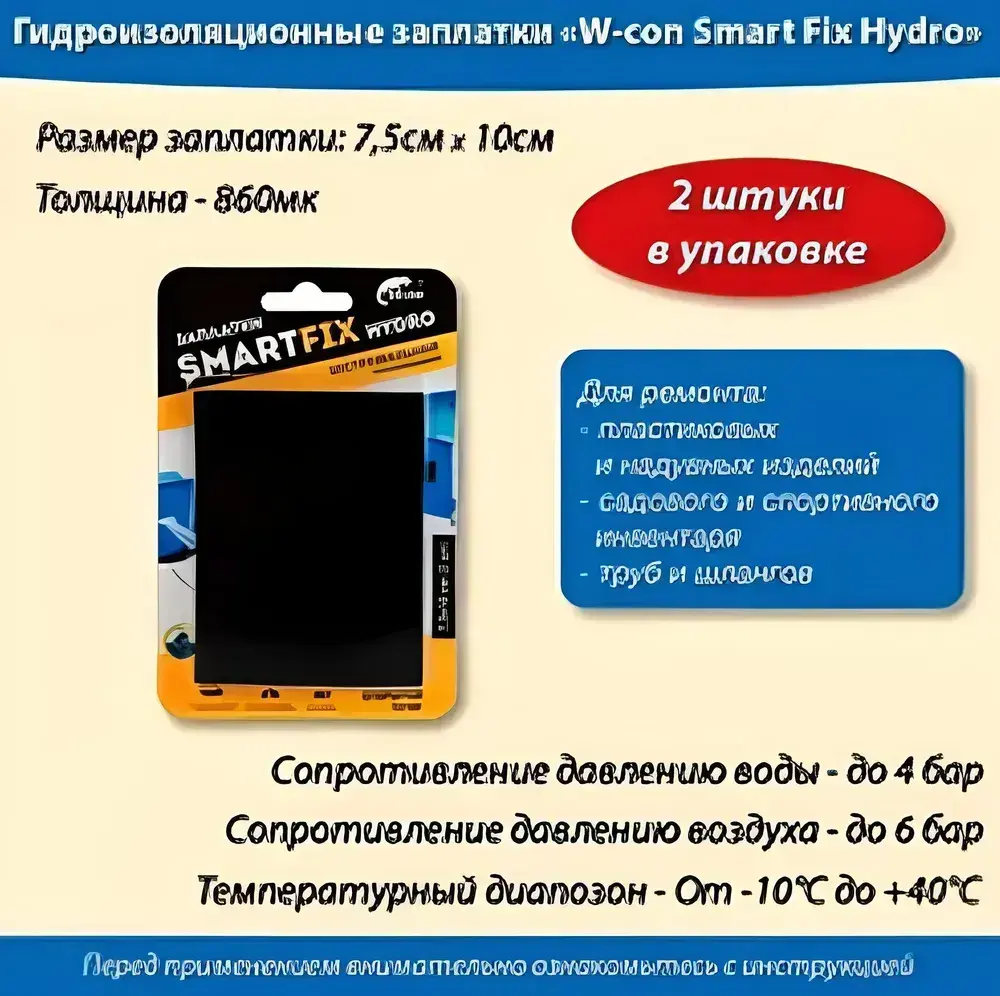 Заплатки гидроизоляционные W-con SmartFix HYDRO 7,5*10см 2шт