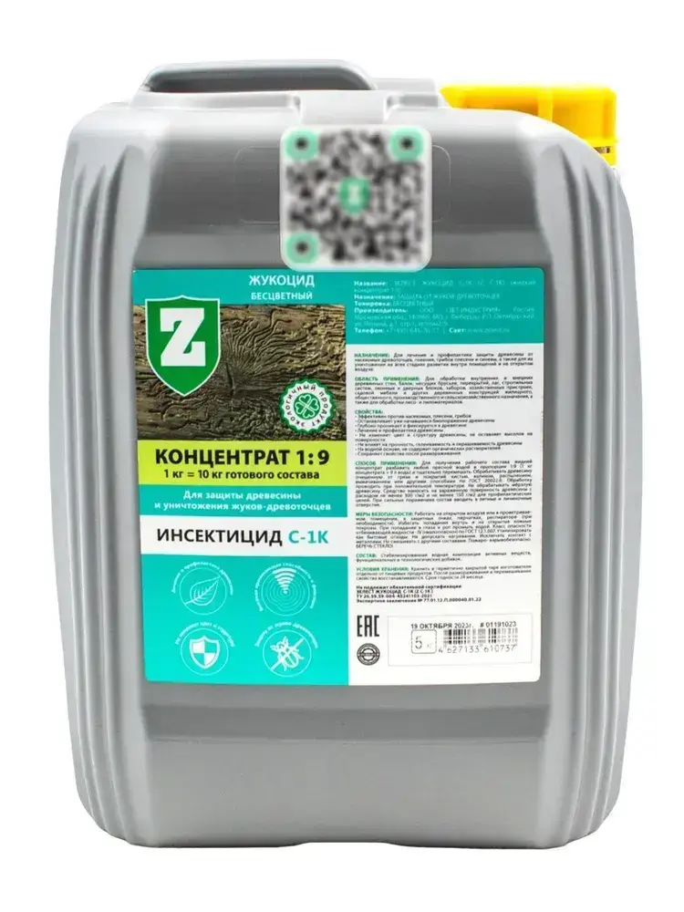 Зелест Жукоцид С-1К для защиты древесины и уничтожения жуков-древоточцев. Бесцветный, 5 кг