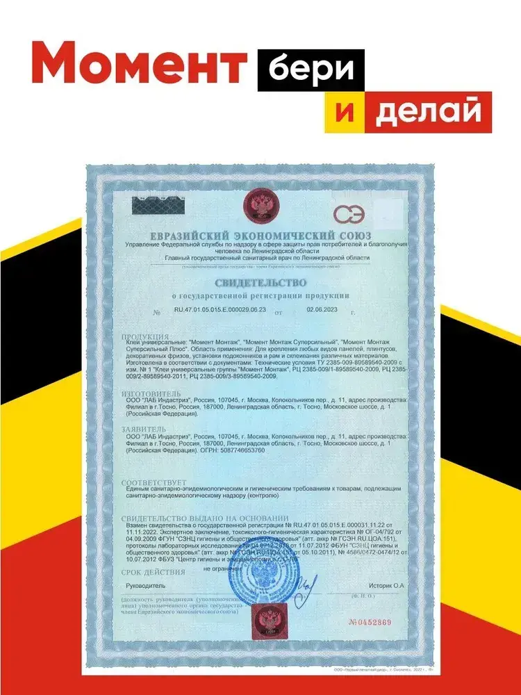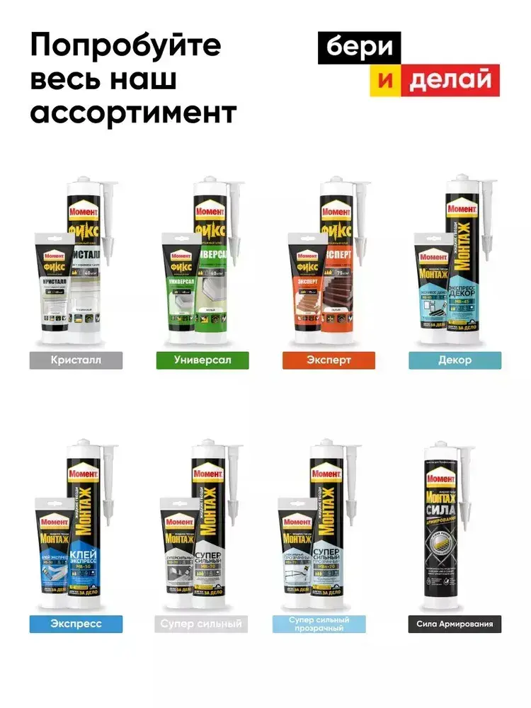 Жидкие гвозди Момент Монтаж МВ-100 Суперсильный Плюс монтажный клей белый, 380гр