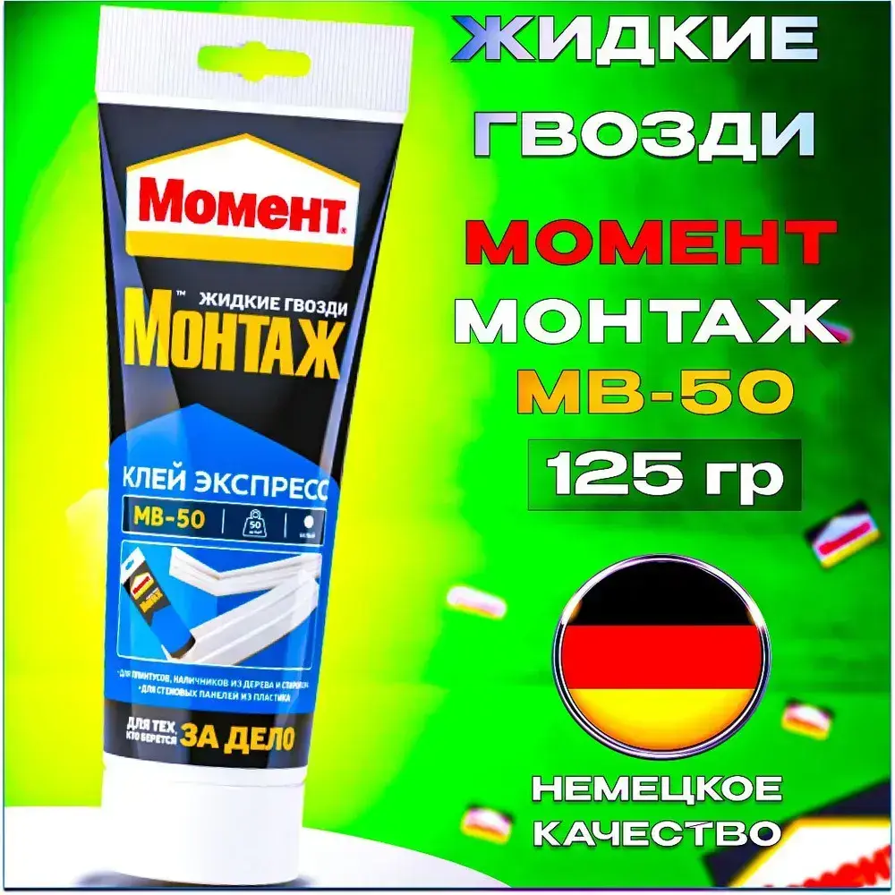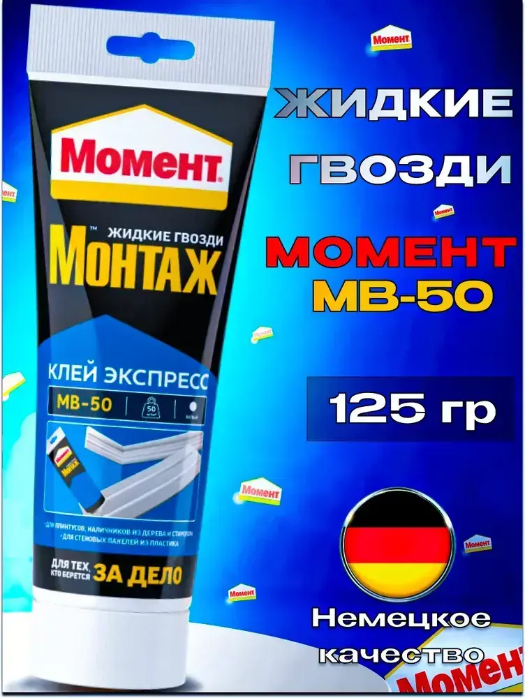 Жидкие гвозди Момент Монтаж МВ-50 Экспресс монтажный клей, 125 гр белый