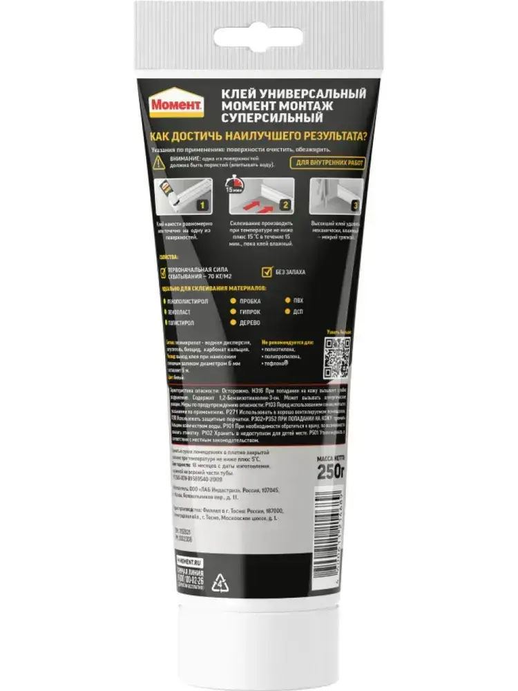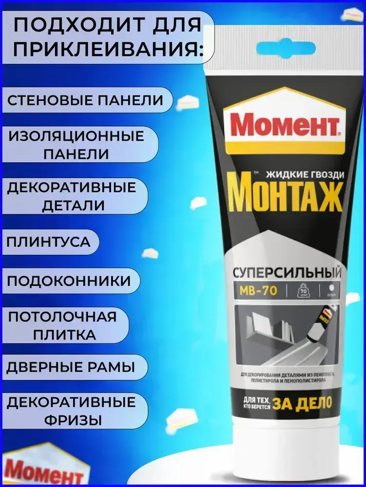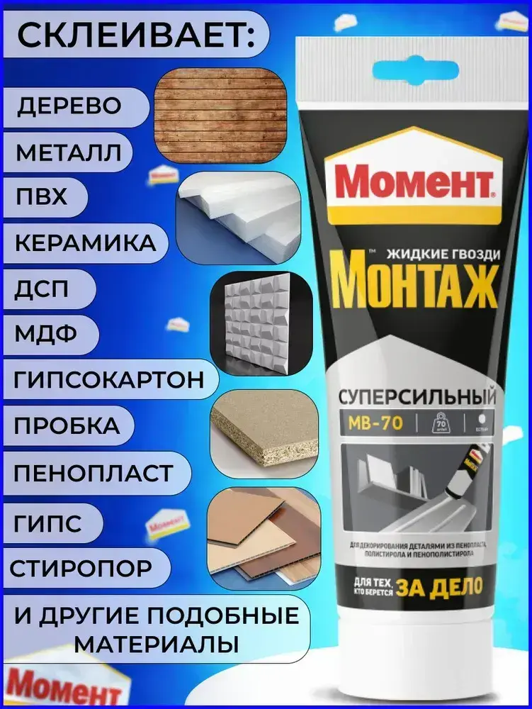 Жидкие гвозди Момент Монтаж МВ-70 250 г, Суперсильный монтажный клей белый