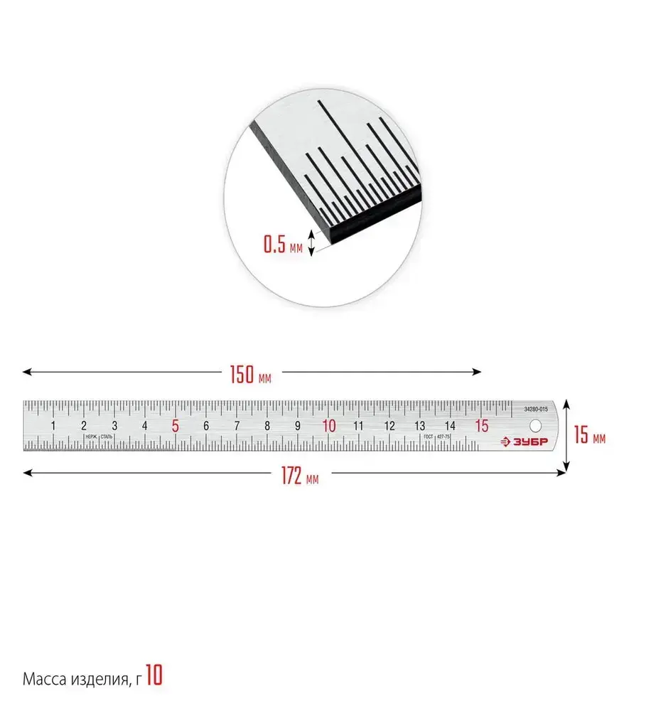 ЗУБР / 15см, усиленная нержавеющая линейка