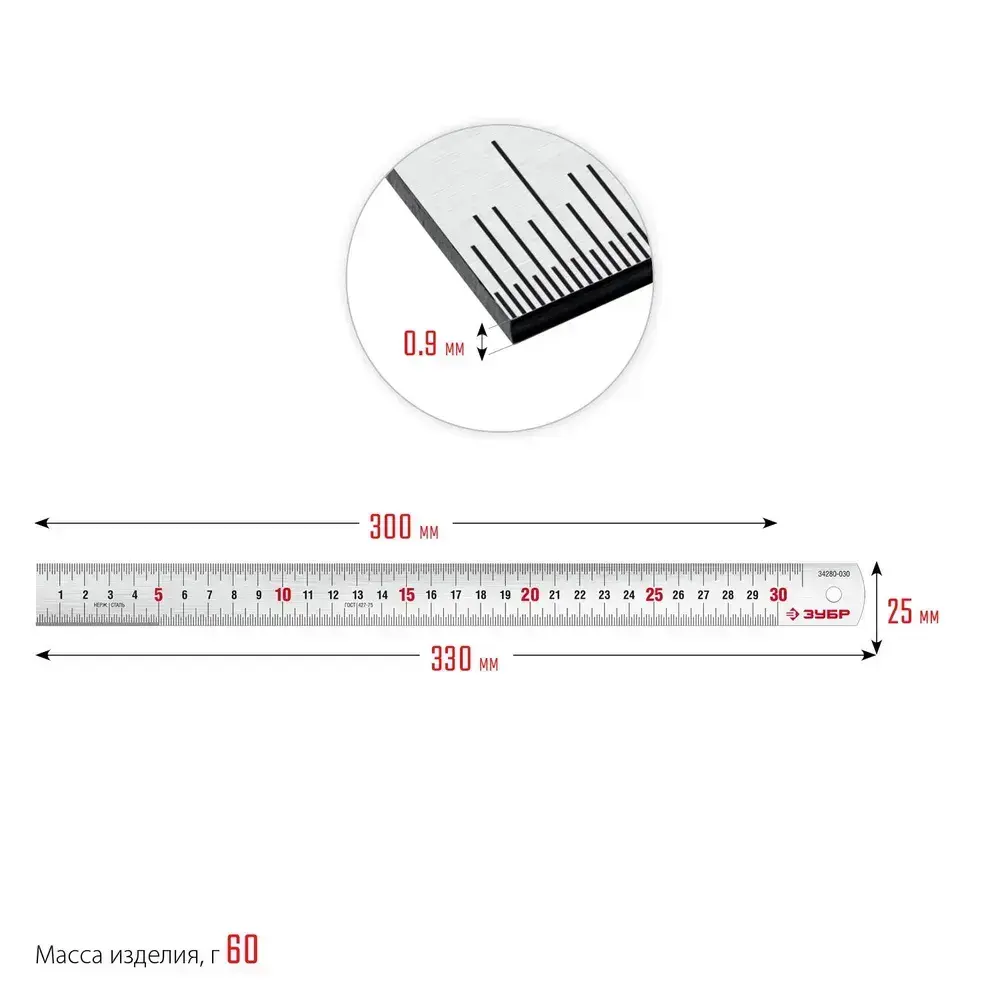 ЗУБР / 30см, усиленная нержавеющая линейка
