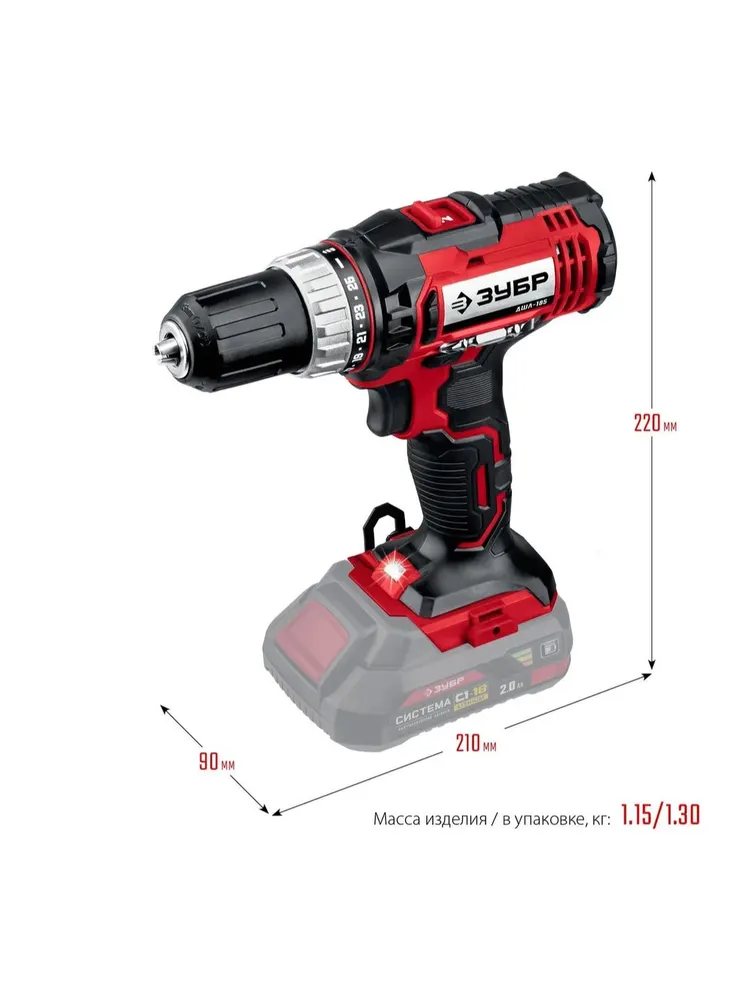 ЗУБР Дрель-шуруповерт, 18 В, 40 Нм, 0 АКБ