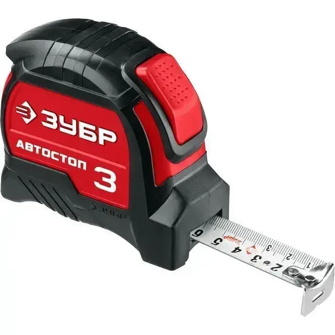 ЗУБР. Строительная рулетка 3м х 16 мм. с автостопом и ударостойким обрезиненным корпусом.