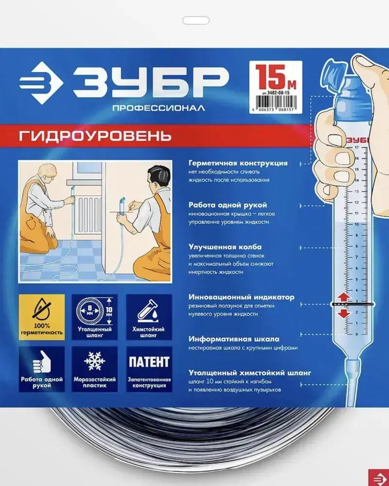 ЗУБР Уровень гидростатический 1500 см 15 м